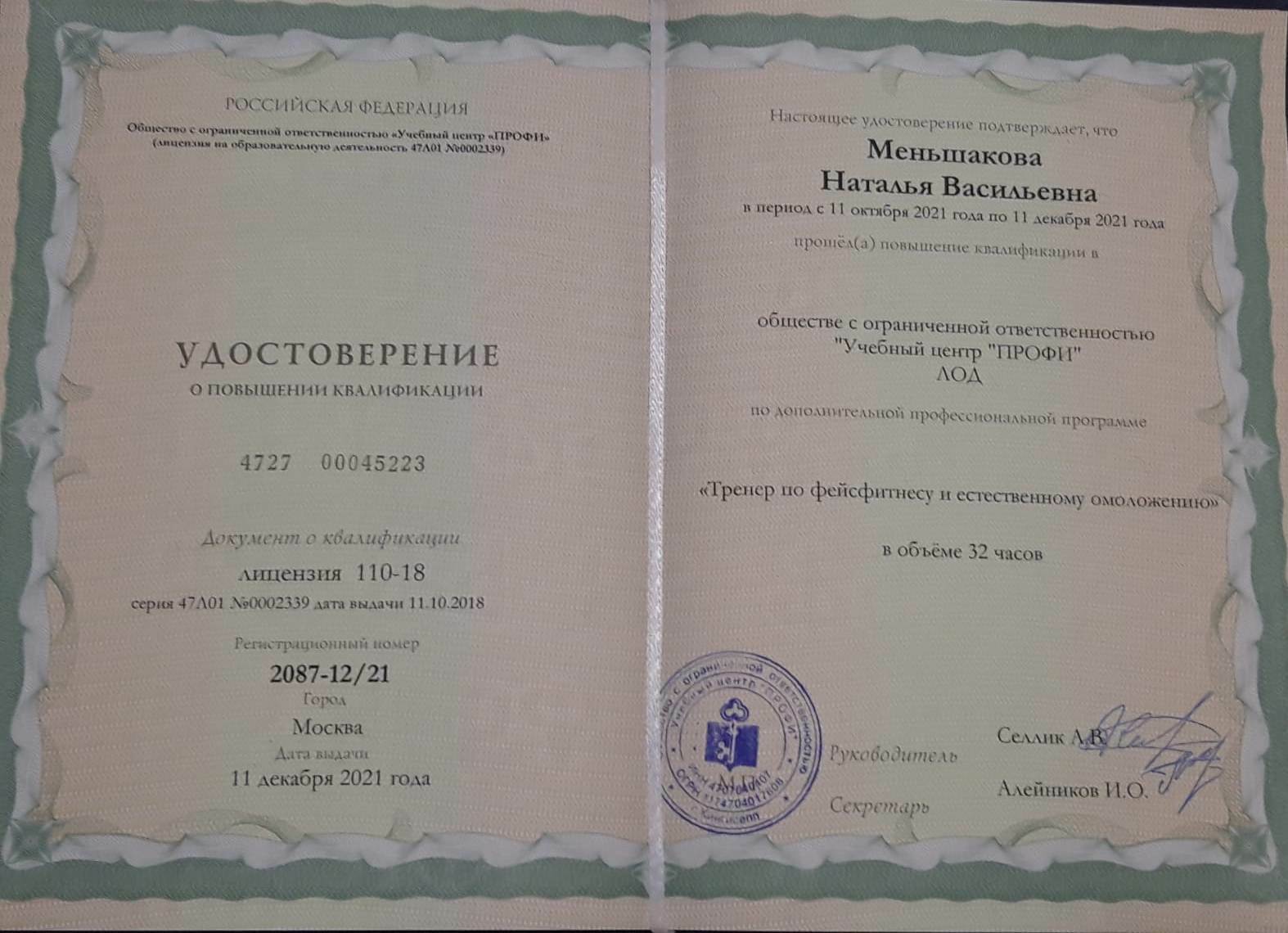 Сертифицированный тренер по фейсфитнесу и естественному омоложению